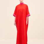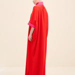 فستان ماكسي عامودي بياقة عالية بلونين