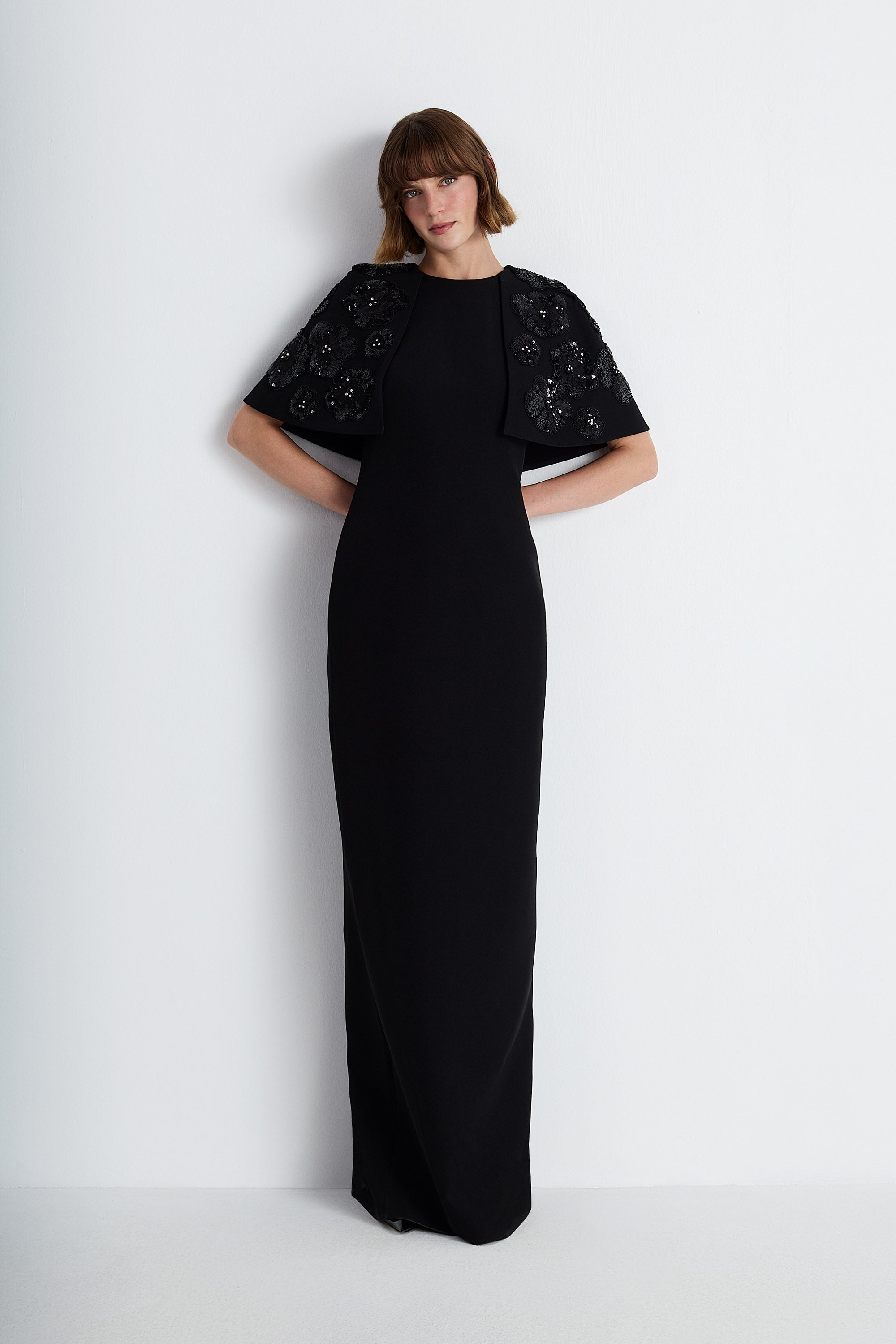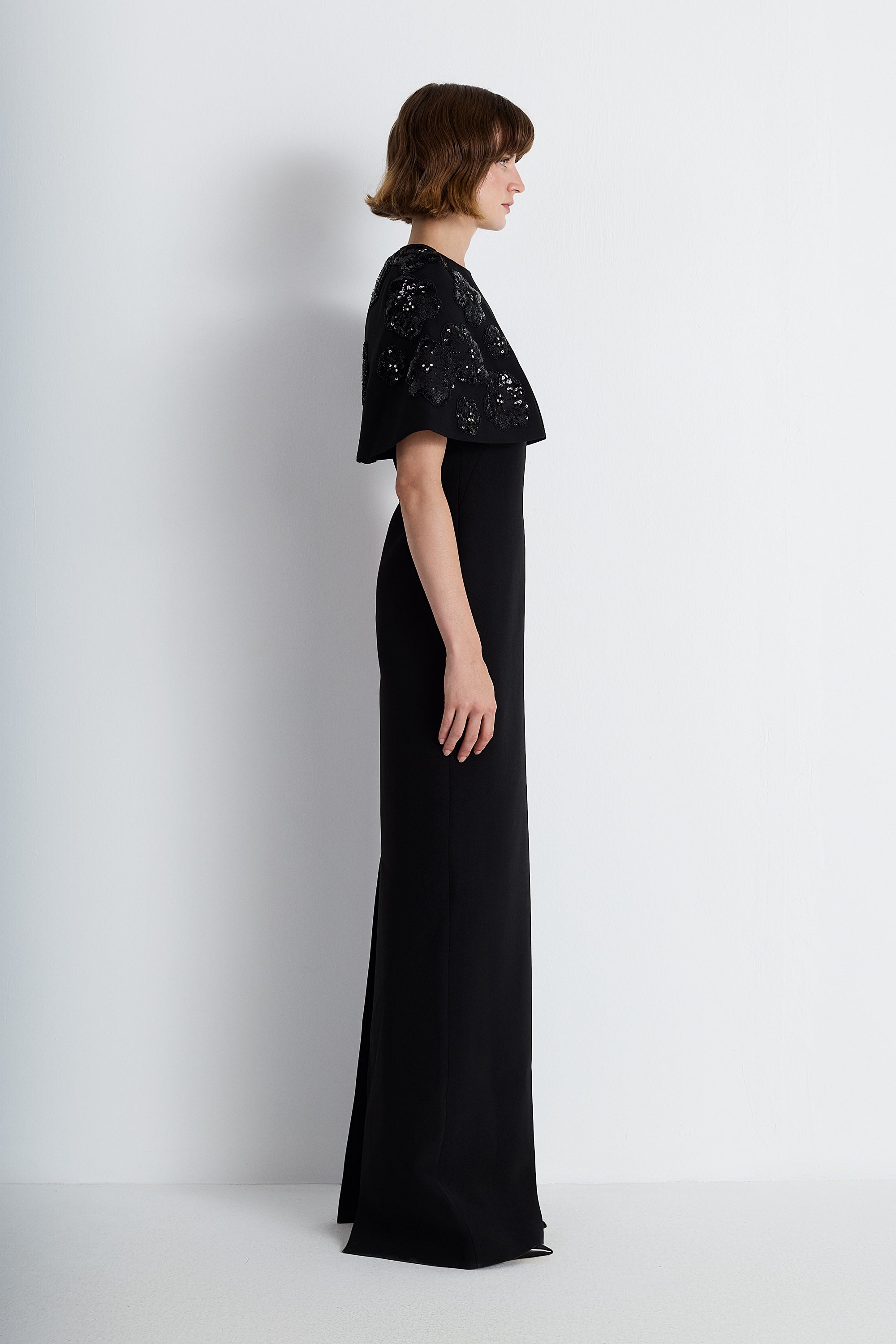 Nean Gown With Sheer Cape Black