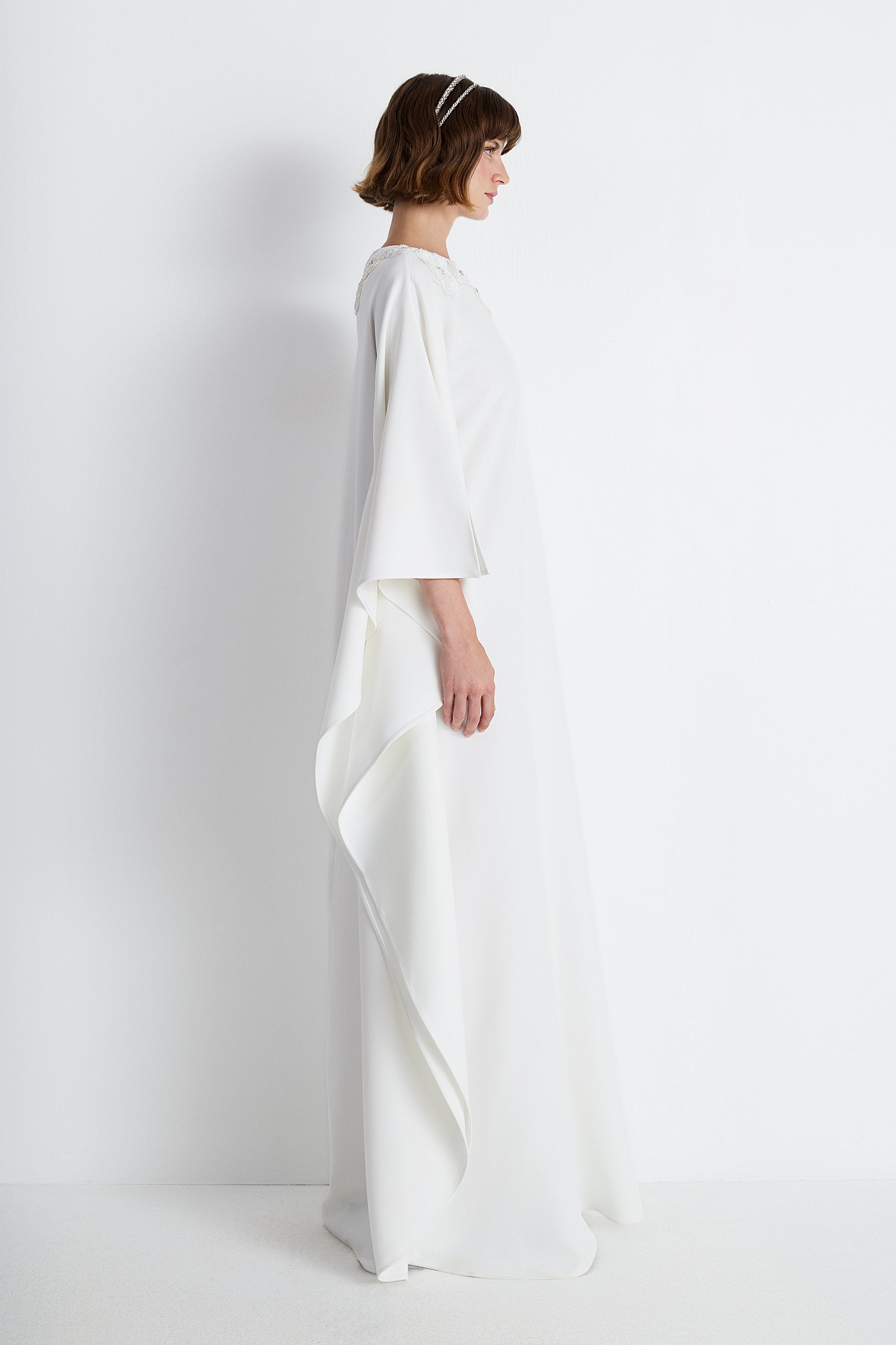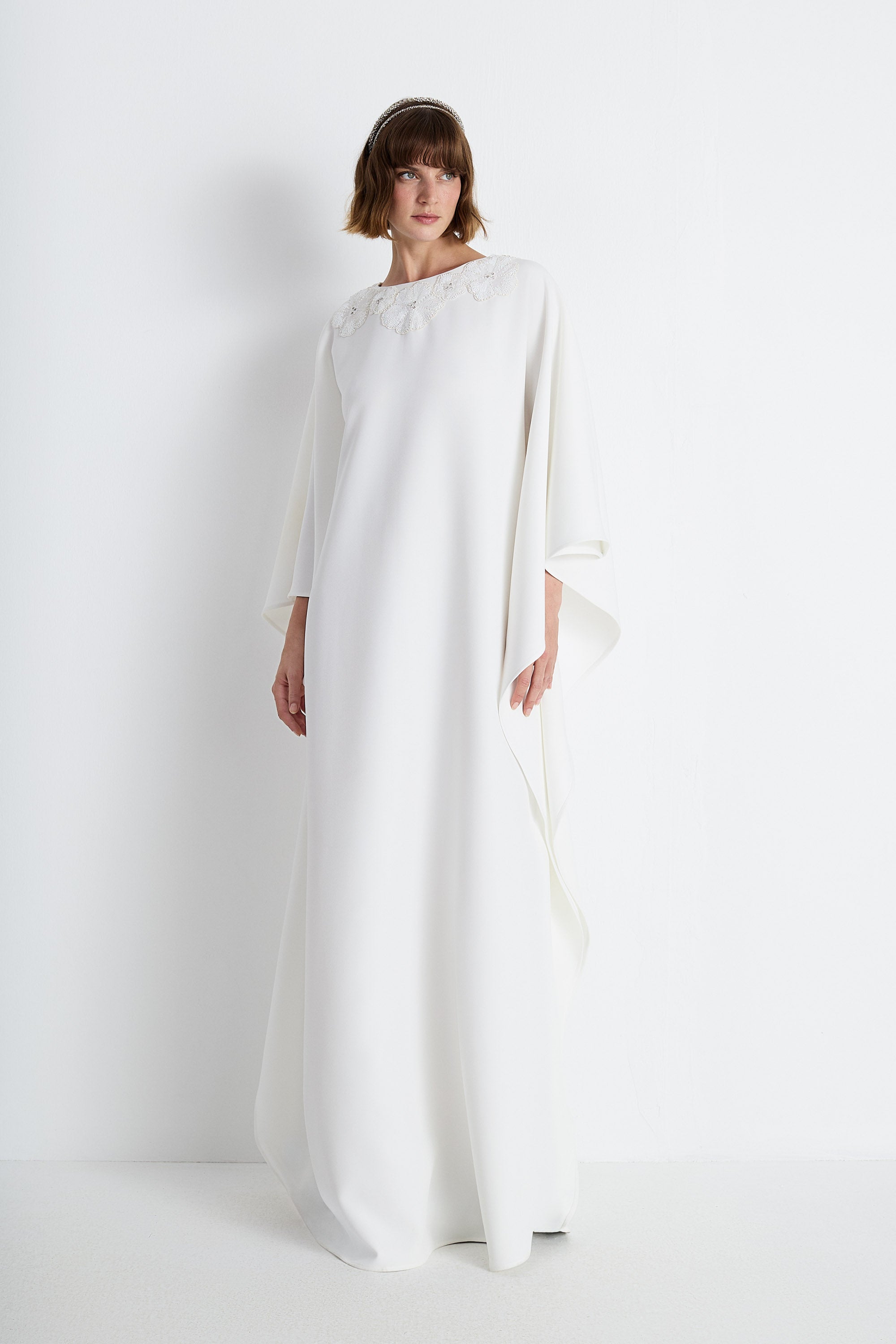 Nean Embellished Neckline Kaftan Gown Off White