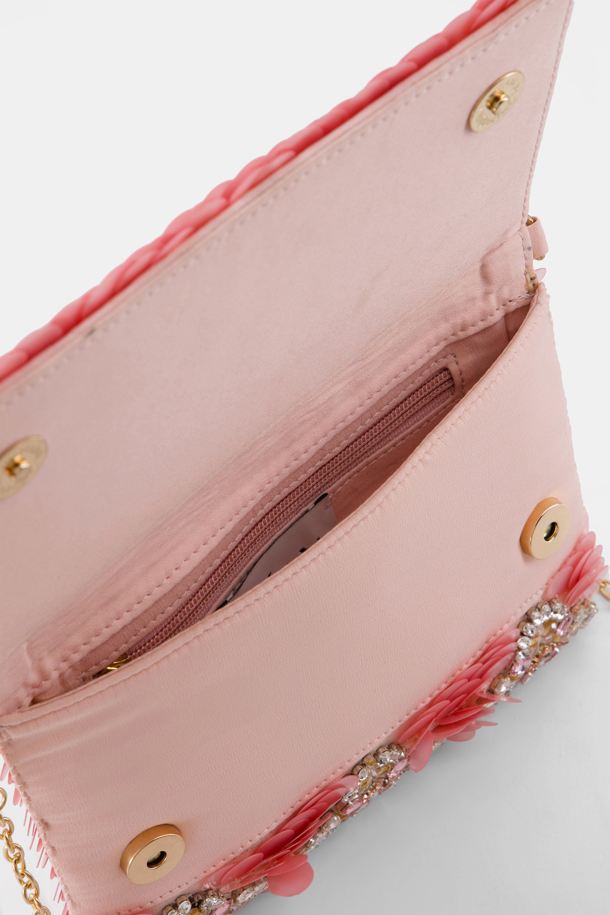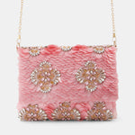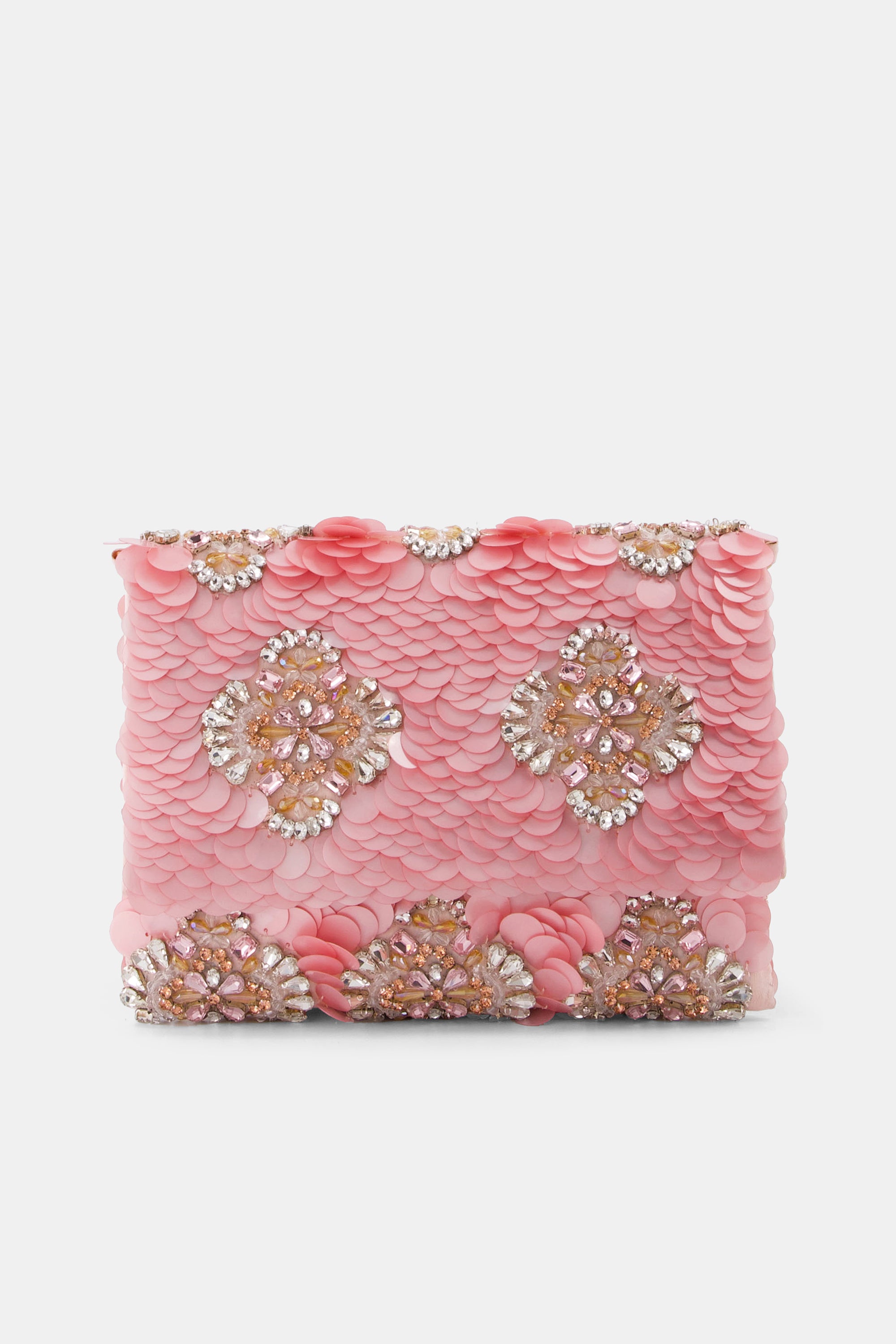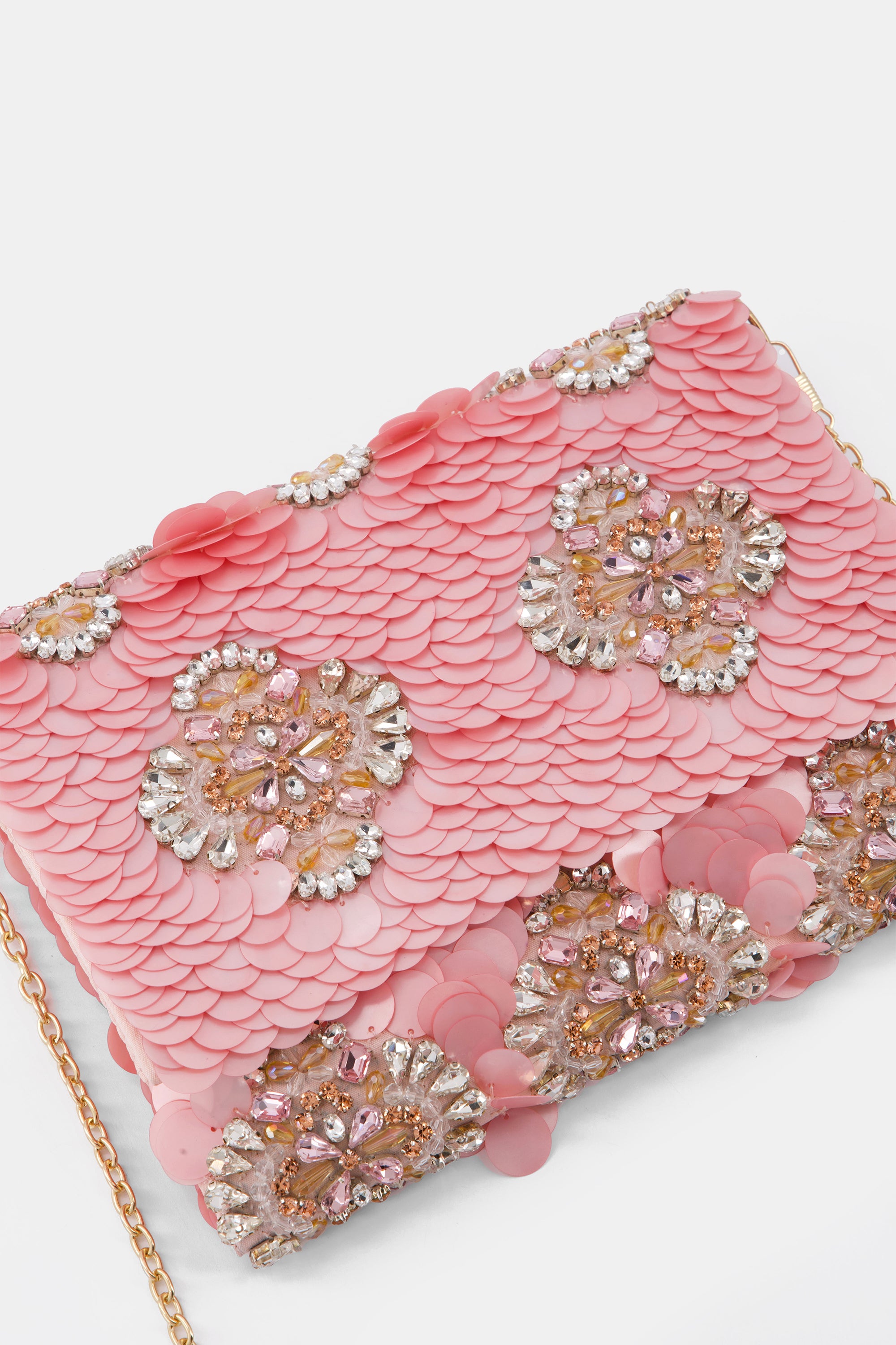 Nean Solid Sequins Embellished Clutch Bag Pink