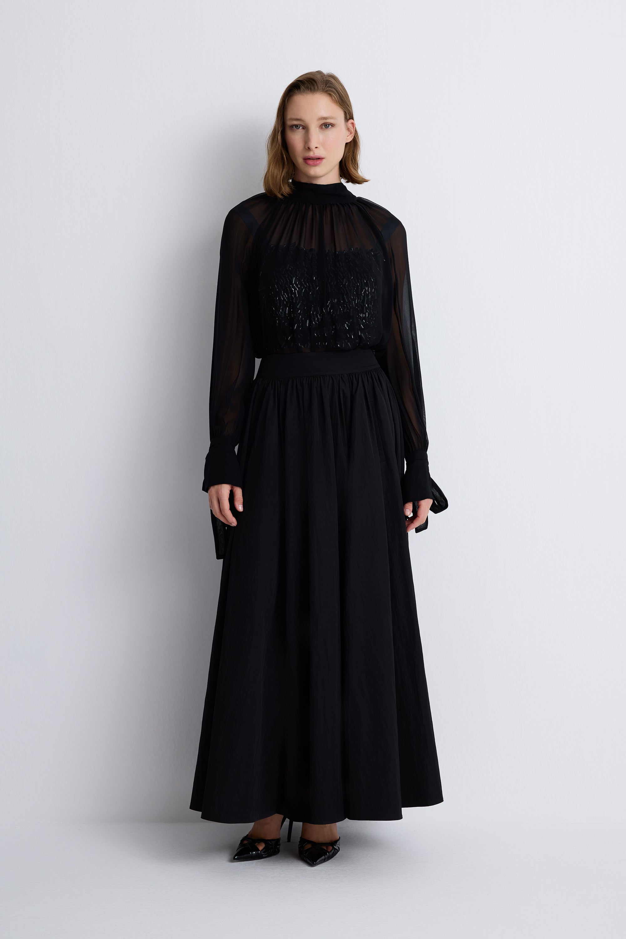 Nean Romantic Silk Chiffon Sheer Blouse Black