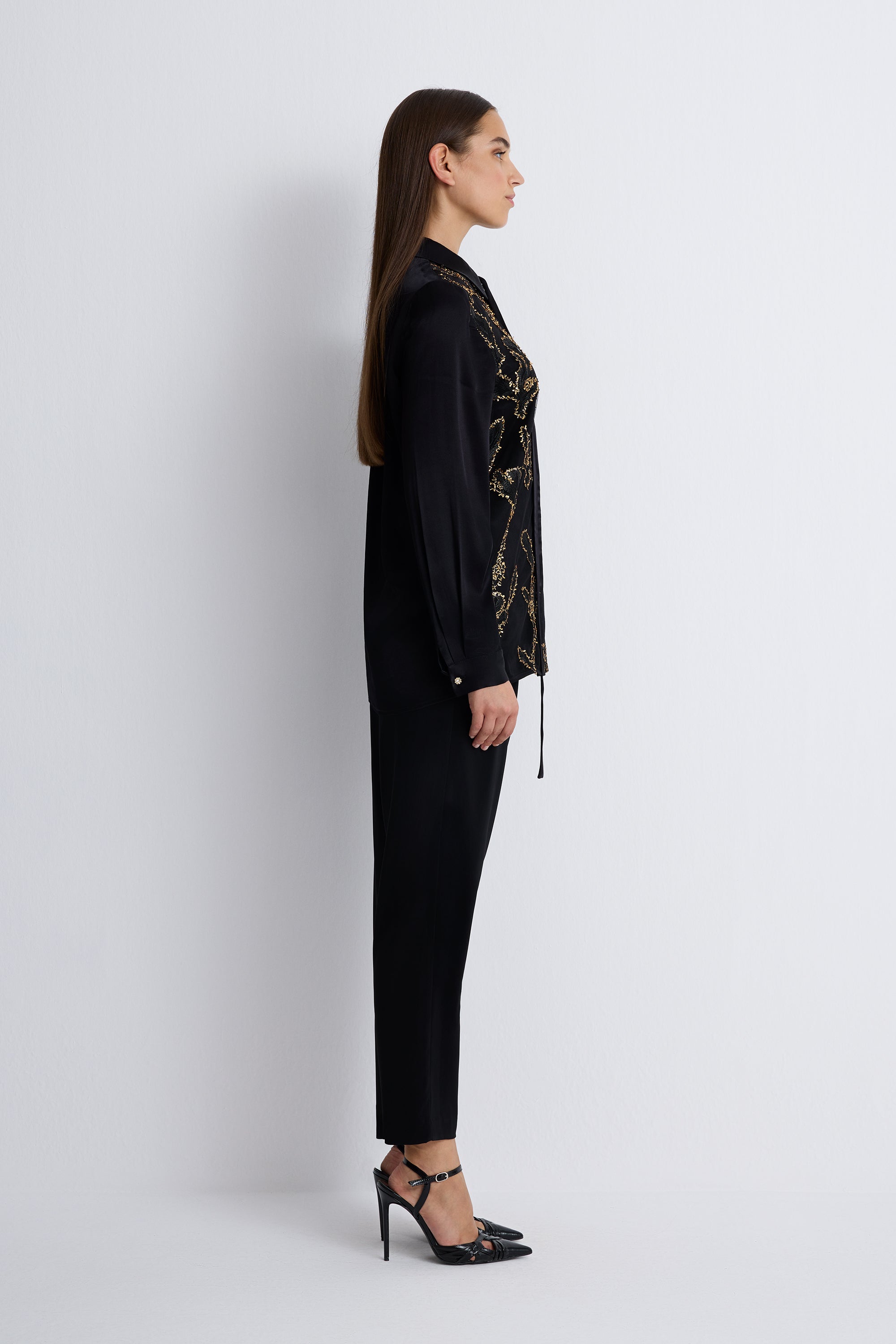 Nean Embroidered Sequin Shirt Blouse Black