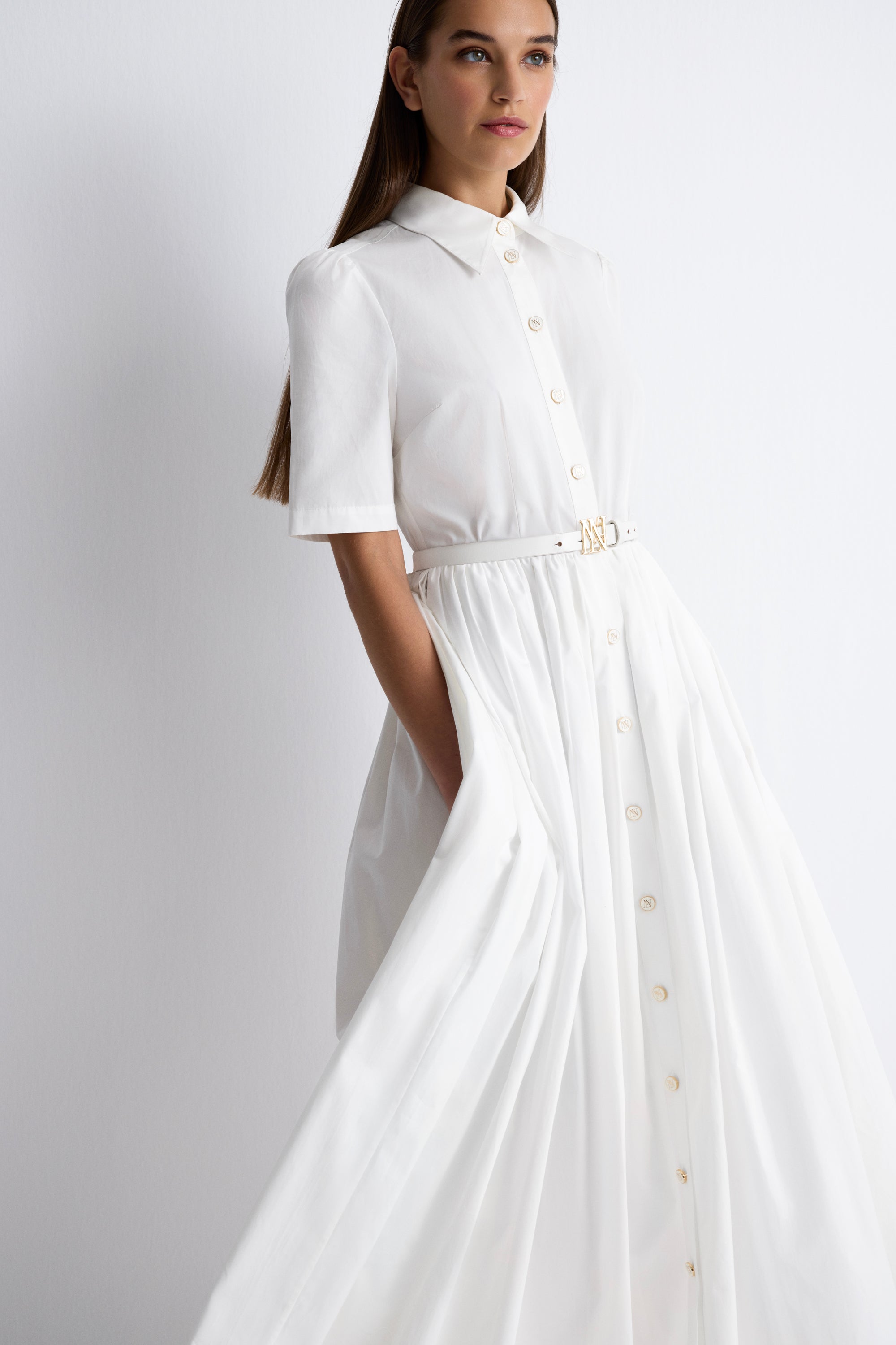Nean Short Sleeve Poplin Dress Off White