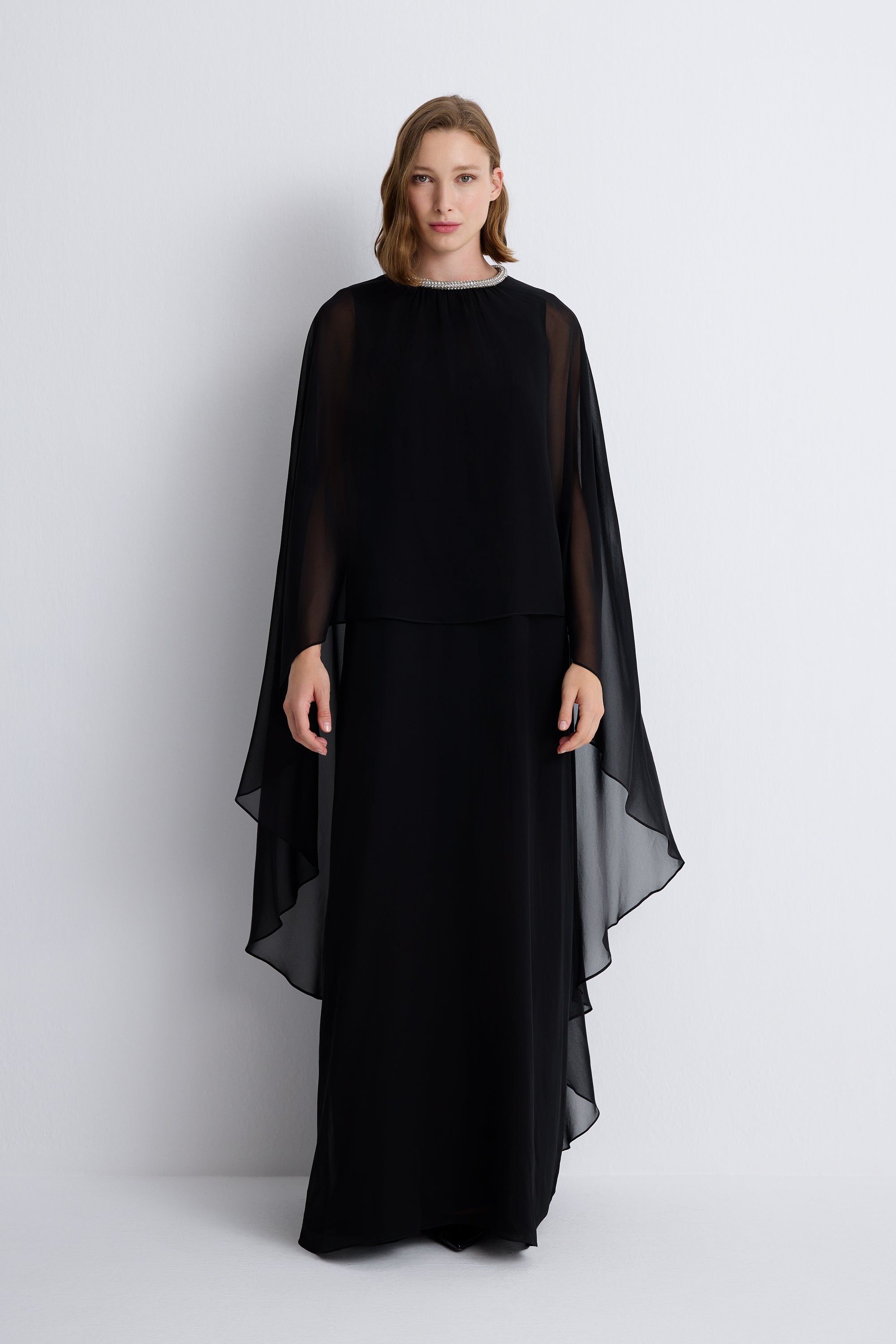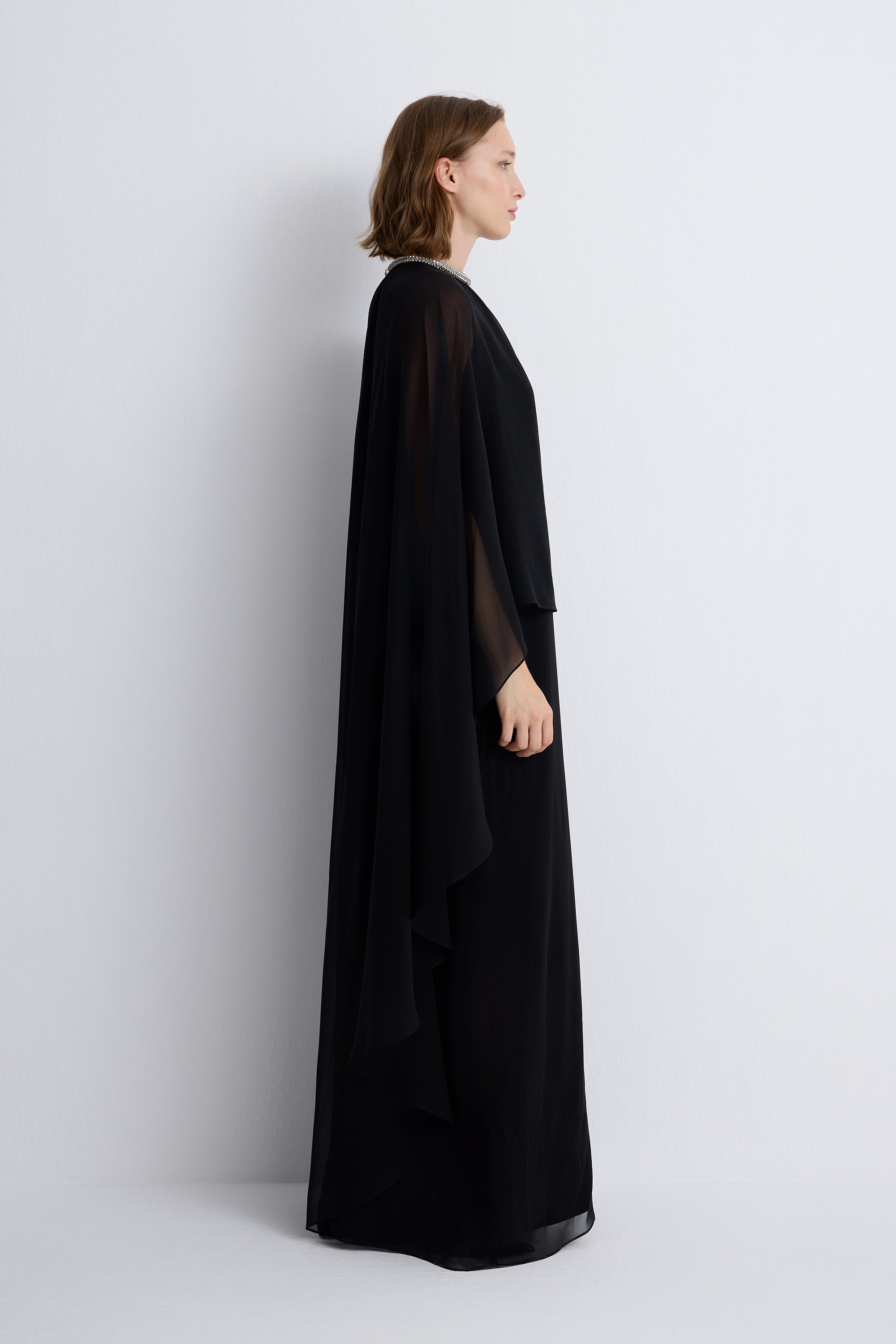Nean Silk Cape Dress Black