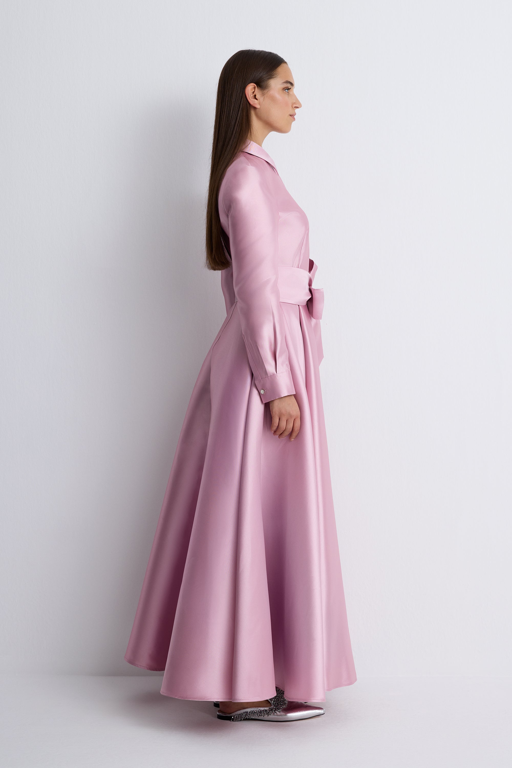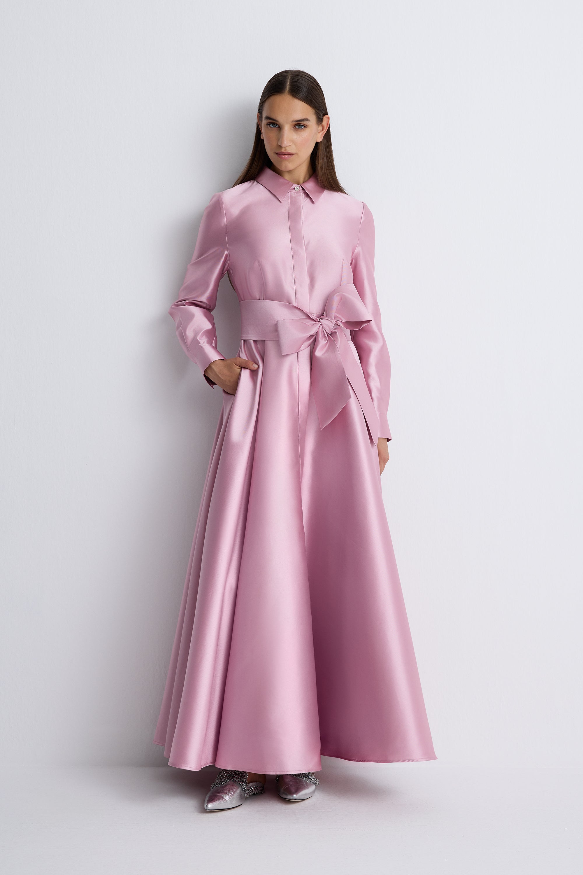 Nean Maxi Shirt Dress With Bow Detail Pink