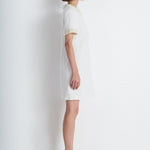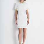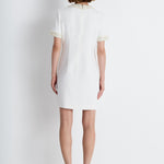 A Chic Mini Dress In White, Finished With A Pearl And Bead-Embellished Collar And Sleeve Cuffs. Its Clean Shift Silhouette Makes It An Effortlessly Elegant Piece For Cocktail Events, Parties, Or Elevated Daywear.
