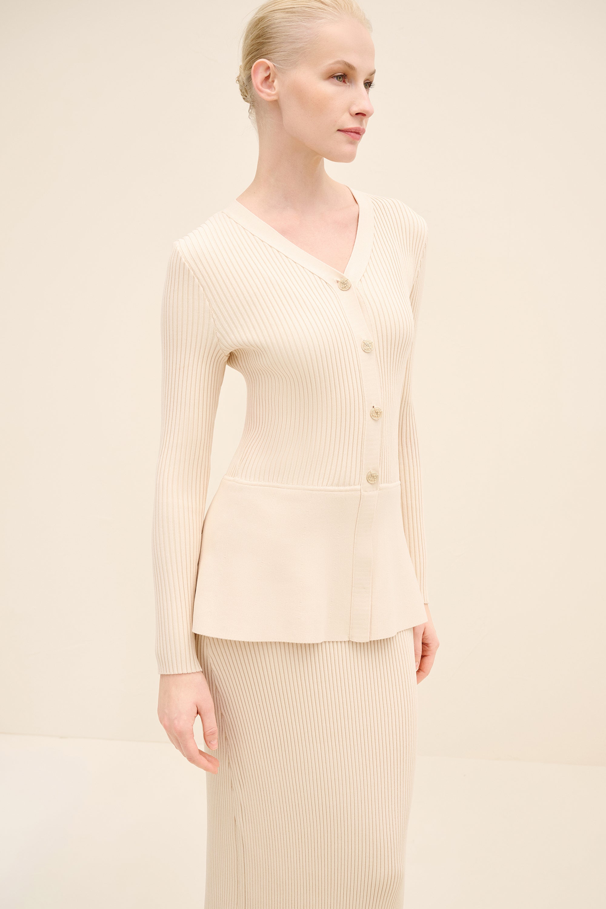 Mandarin Collar Flared Cuff Blouse Offwhite