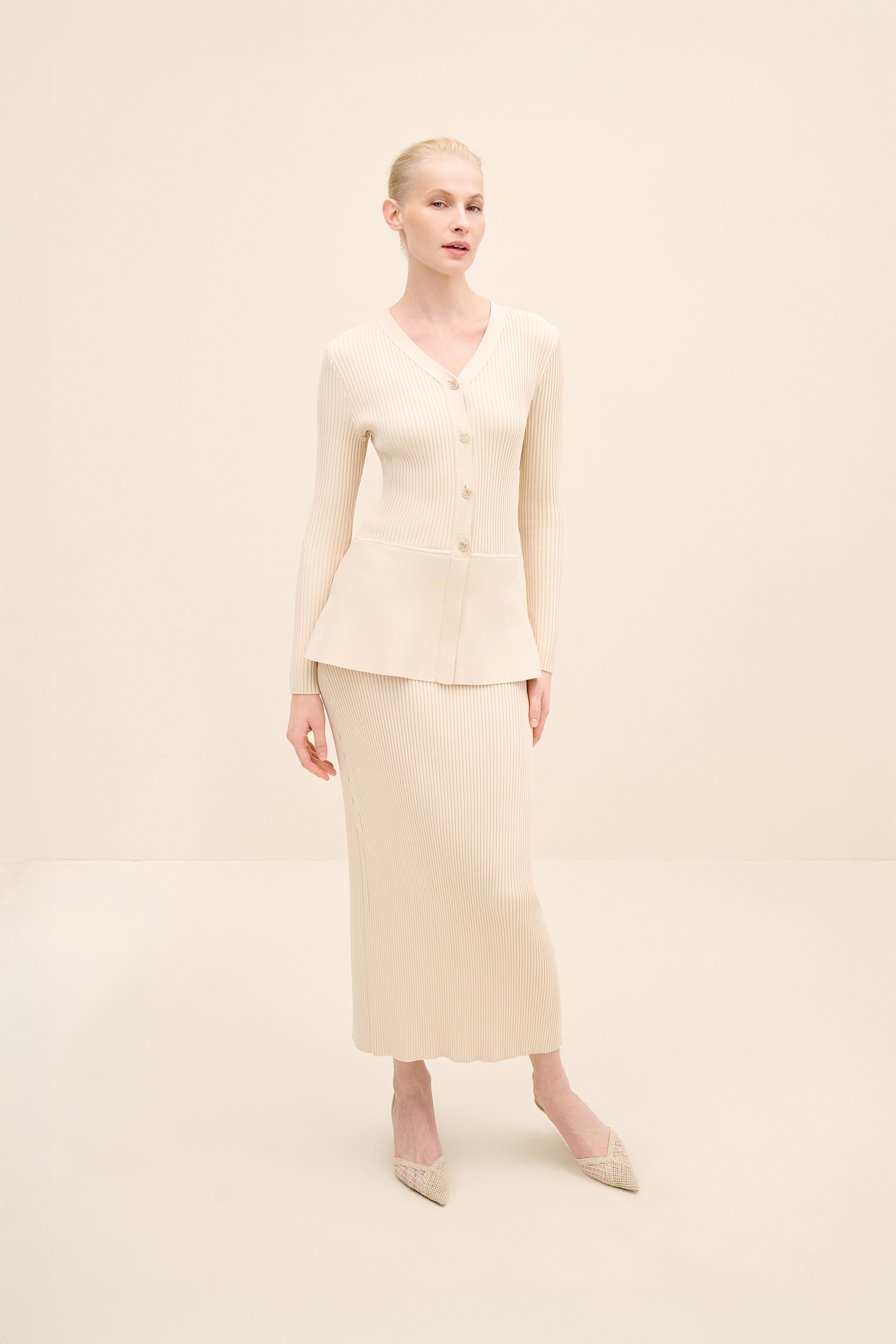 Draped Chiffon Bodice Crepe Column Gown Offwhite