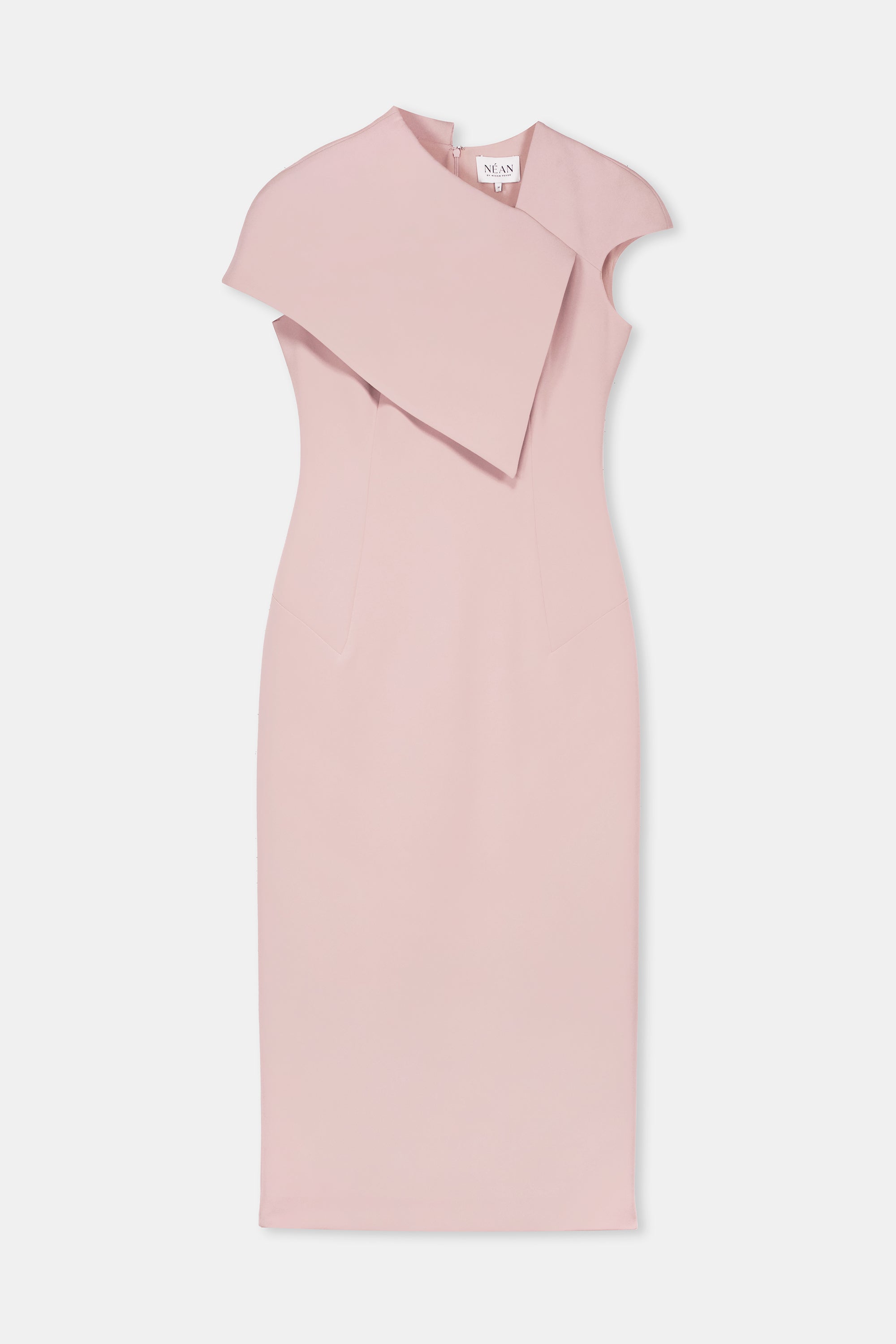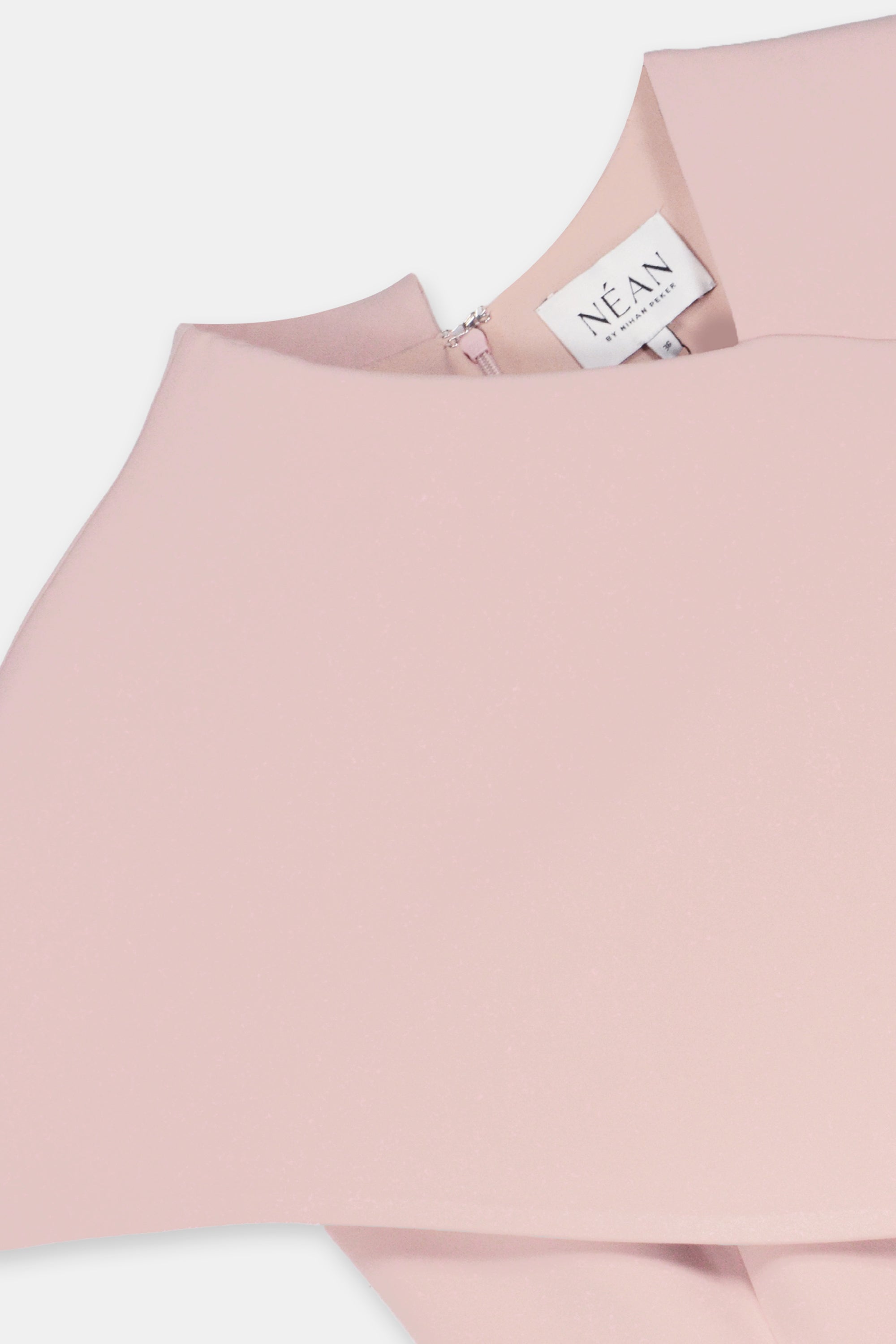 Nean Asymmetric Shoulder Midi Dress Light Pink