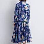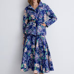 A Statement Midi-Length Skirt In A Bold Floral Print On A Rich Blue Base. This Look Offers A Sophisticated Balance Of Structure And Movement, Ideal For Both Daytime Elegance And Evening Occasions.