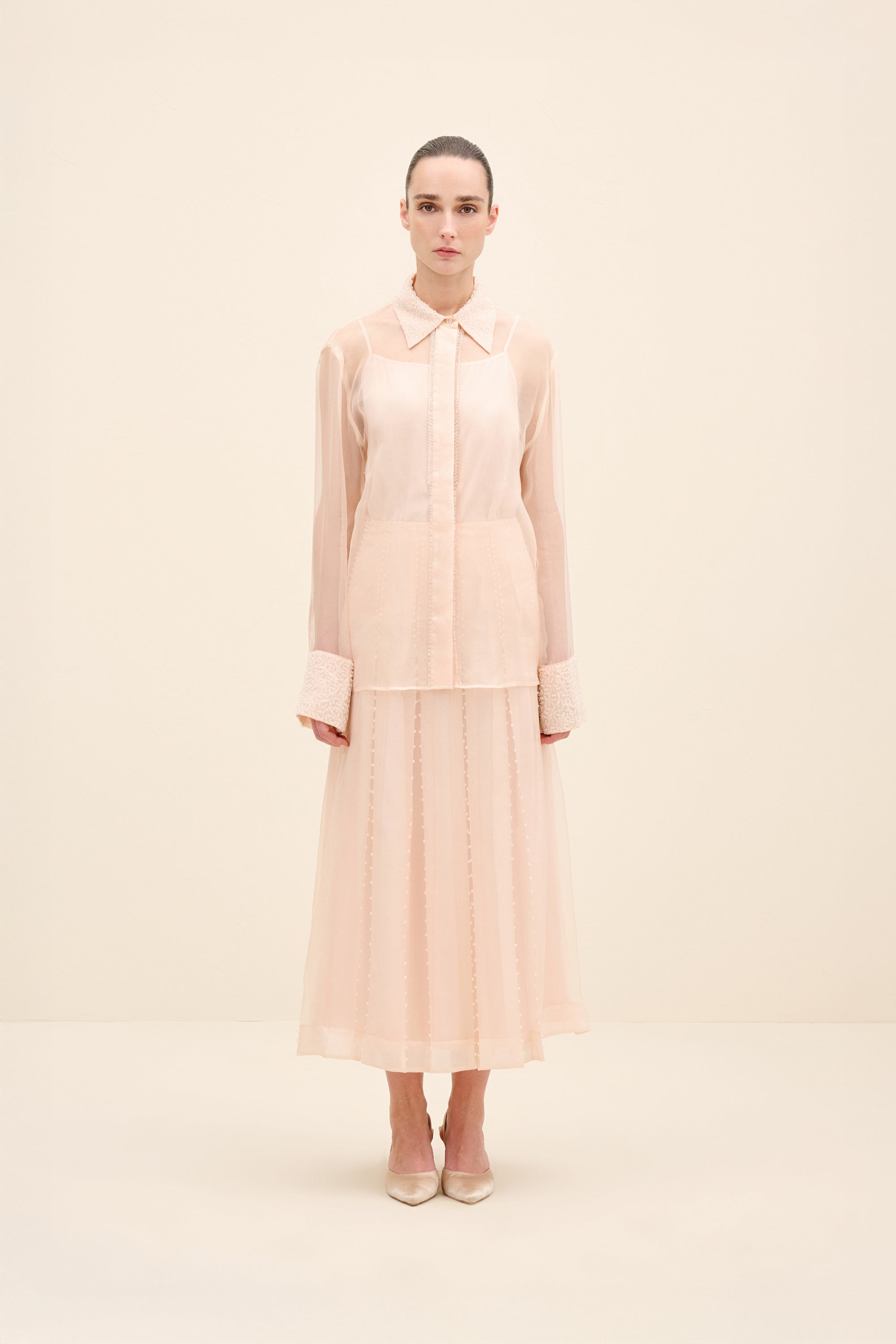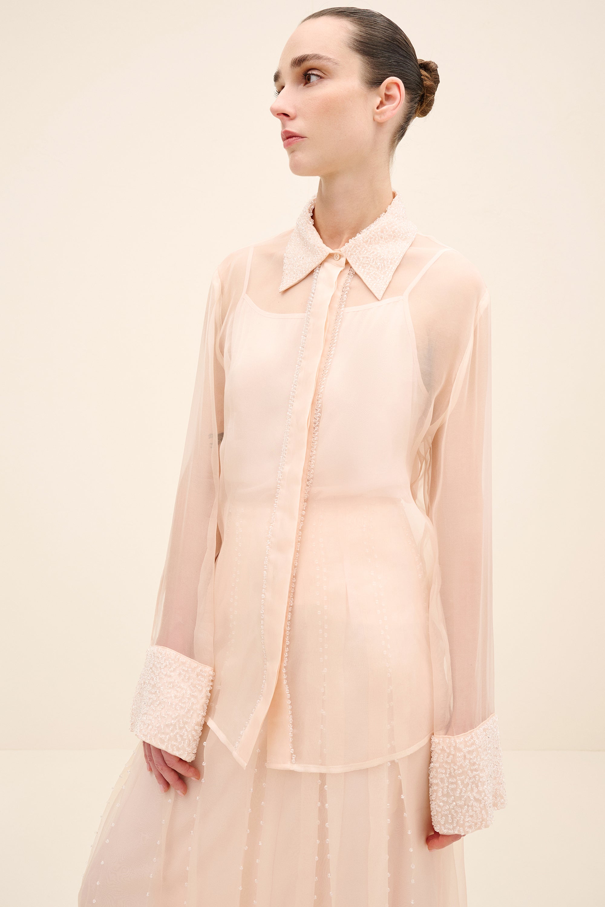Lace-Up Sleeve Oversized Tunic Shirt Offwhite