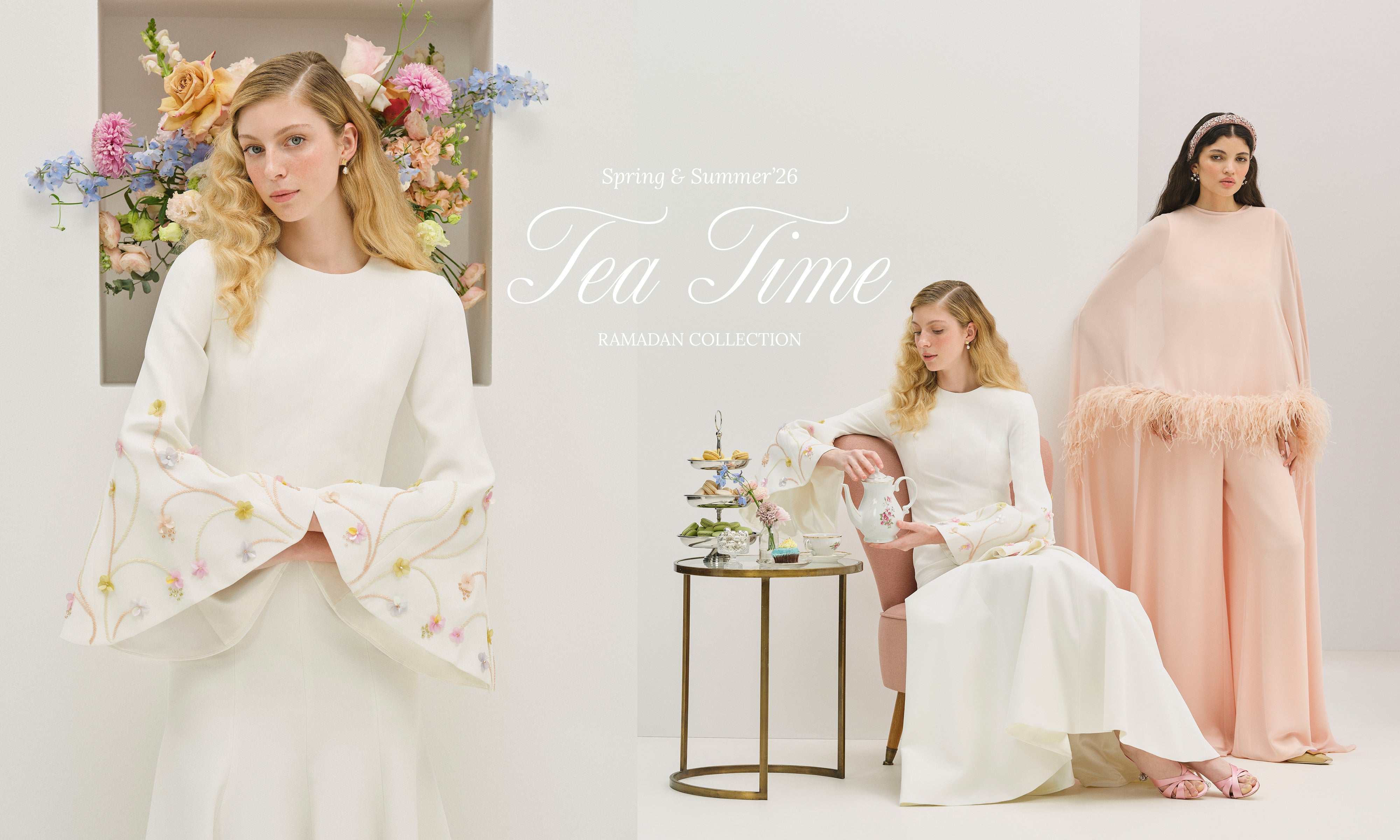 A season of grace unfolds with Tea Time, shaped by moments of pause, elegance, and togetherness. Pastel silhouettes, adorned with floral and crystal details, softly celebrate the art of gathering.