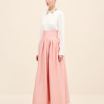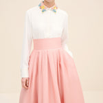 Styling Note: The collar take center stage by wearing it buttoned to the top. pair with a high-waisted skirt for a refined silhouette or tailored trousers for a polished day look. keep accessories minimal — the embellished neckline acts as built-in jewelry.