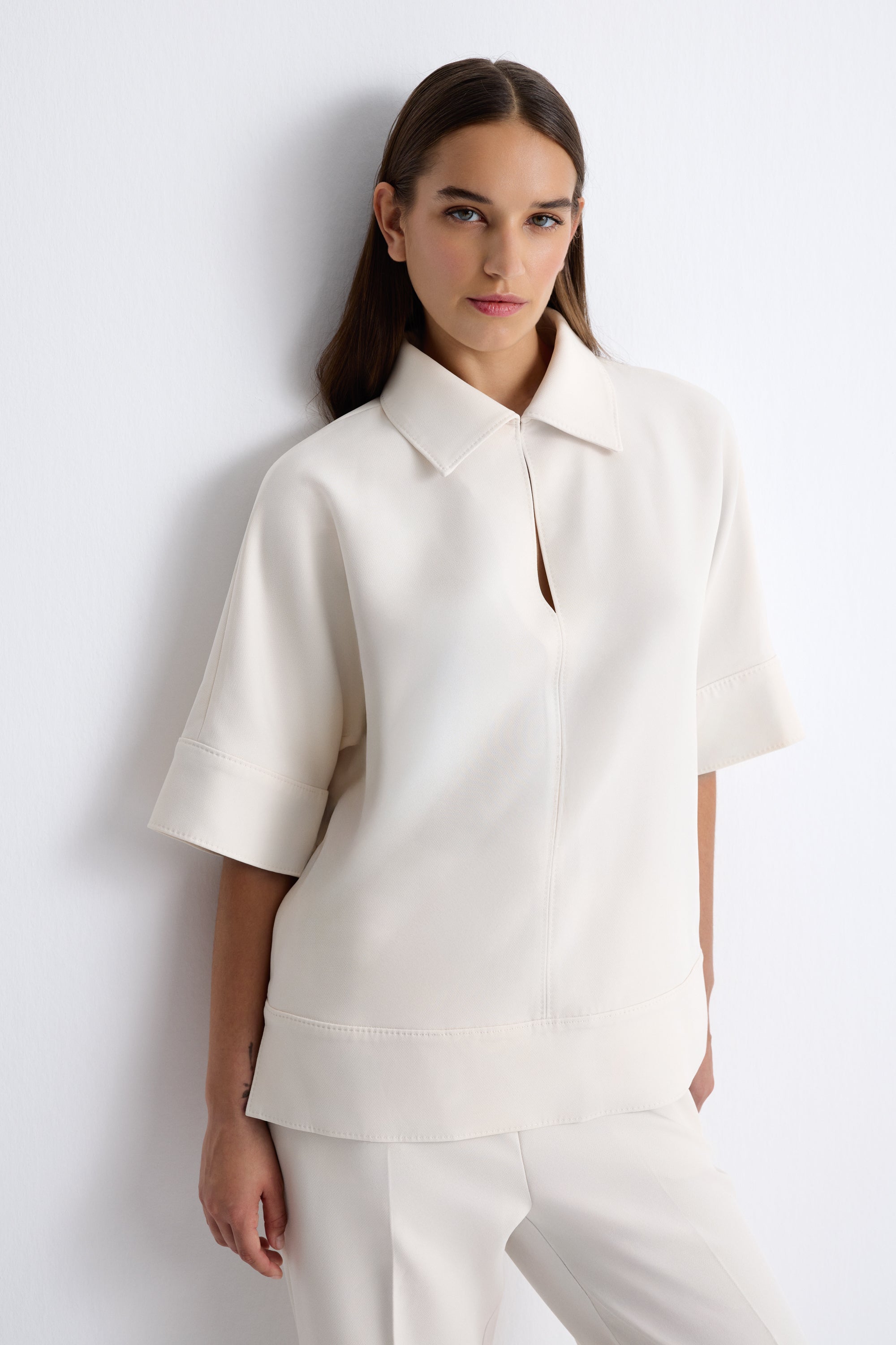 A Refined Co-Ord Set In Soft Cream, Designed For Effortless Sophistication. The Short-Sleeve Top Features A Boxy, Tailored Silhouette With Clean Lines And Minimal Detailing, Creating A Modern Structured Look. Paired With High-Waisted, Wide-Leg Trousers, This Ensemble Offers Versatility For Both Professional And Evening Occasions.