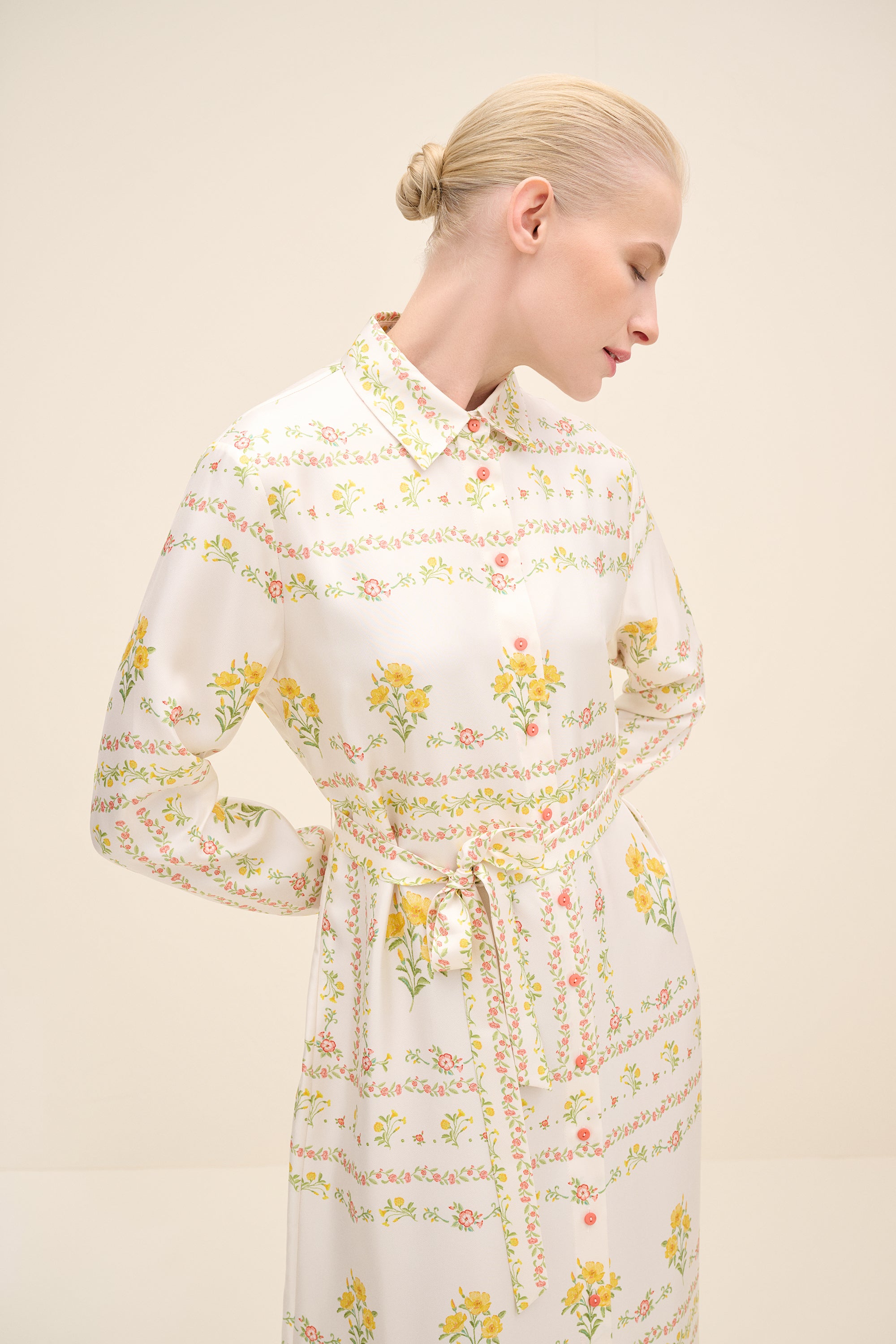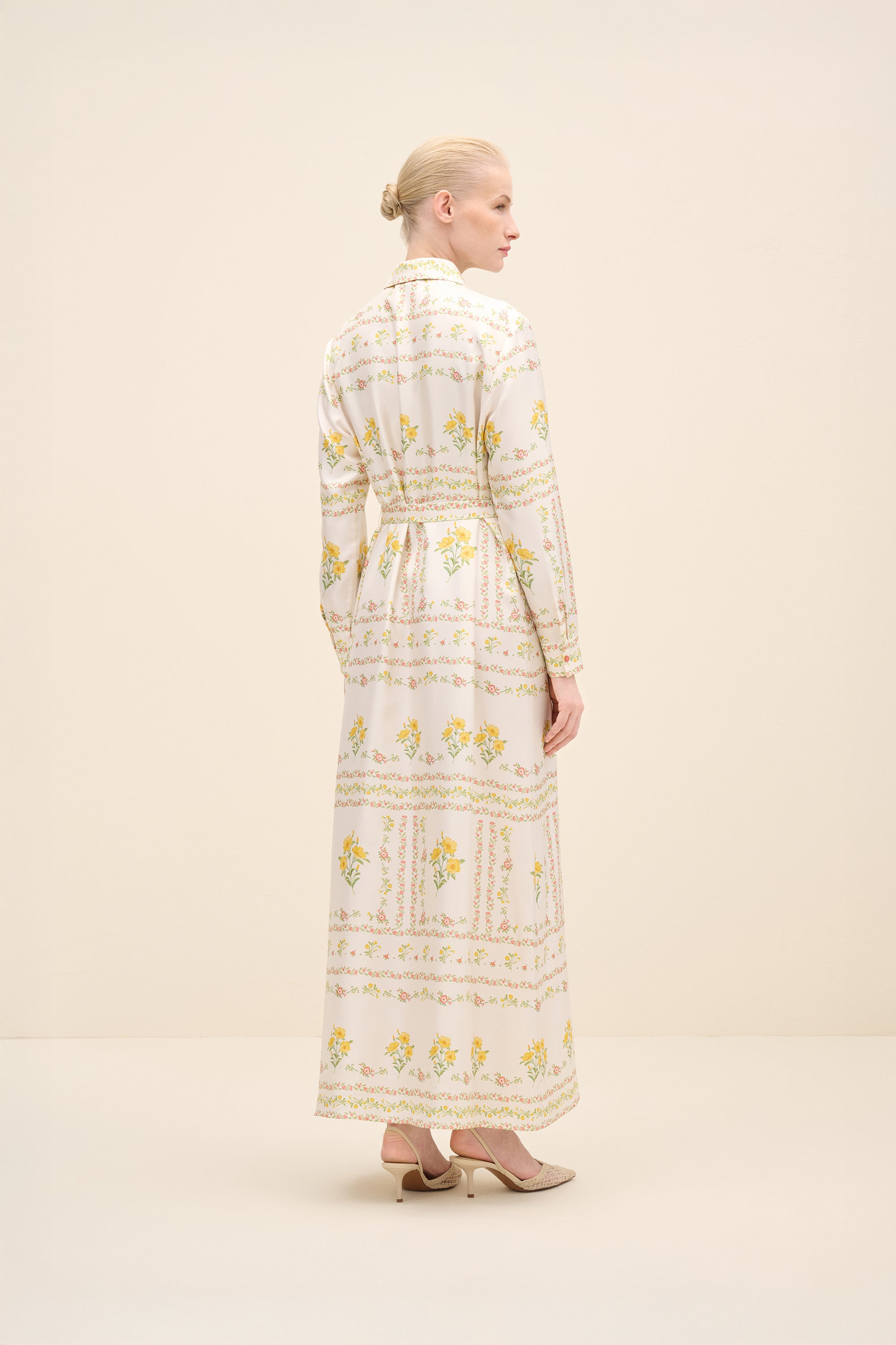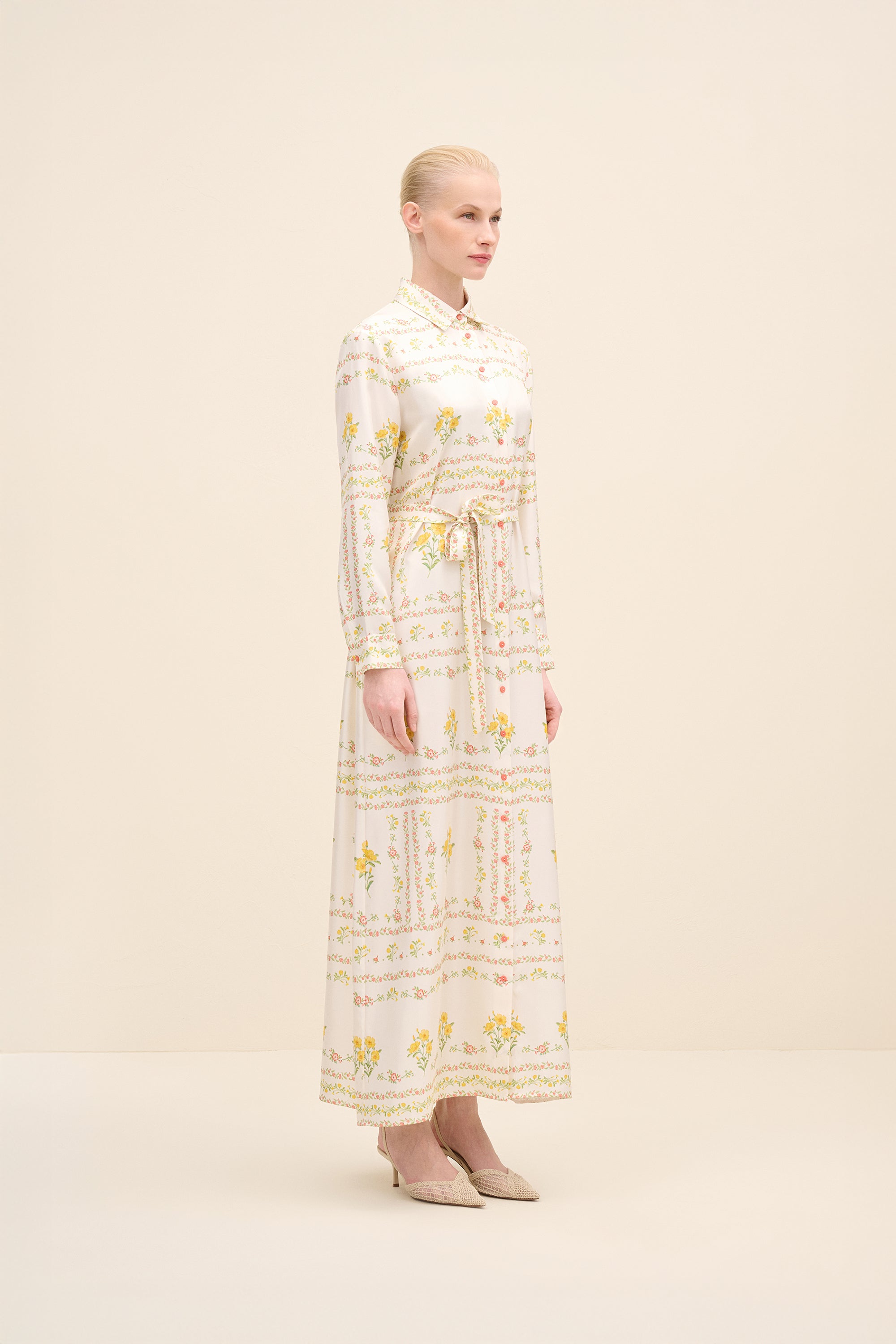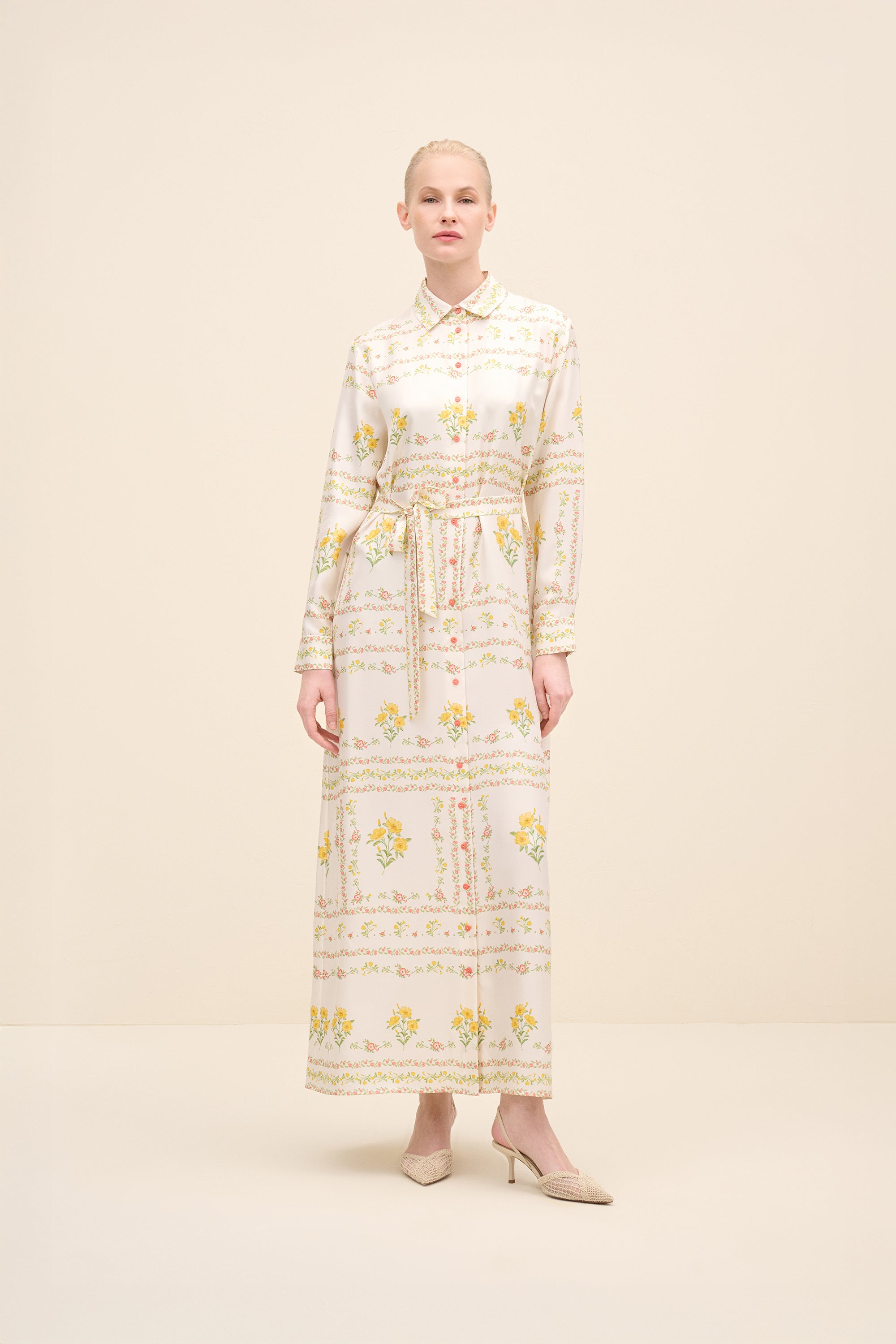 Romantic And Polished, This Shirt Dress Is Printed With Delicate Florals And Framed By Softly Structured Shirting Details. The Self-Tie Belt Defines The Waist, While The Full-Length Silhouette Makes It An Effortless Choice For Ramadan Days That Turn Into Evening Plans.