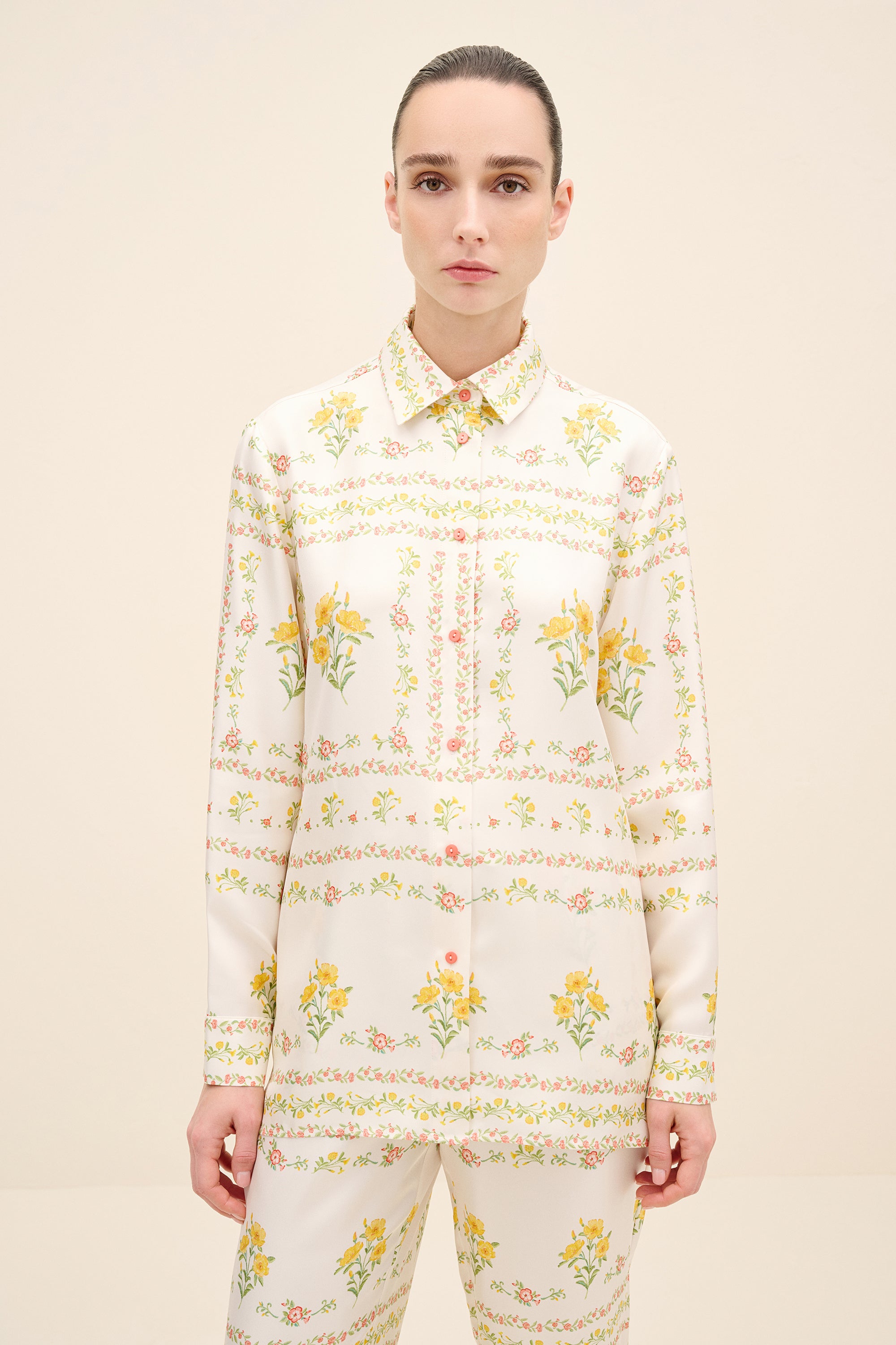 This Shirt Brings A Refined, Feminine Twist To Classic Tailoring. The Floral Print Feels Fresh And Elegant, While The Polished Finish Makes It Perfect For Dressing Up Simple Separates—Especially When Styled As A Set With The Matching Trousers