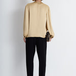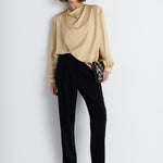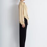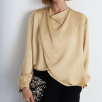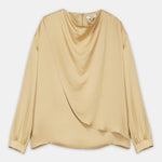 A Sophisticated Draped Blouse In Shimmering Satin, Designed With An Asymmetric Fold Detail That Flows Effortlessly. A Versatile Statement Piece That Elevates Both Day-To-Night Styling, Pairing Beautifully With Tailored Trousers Or Skirts.