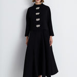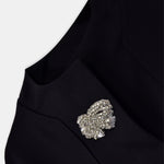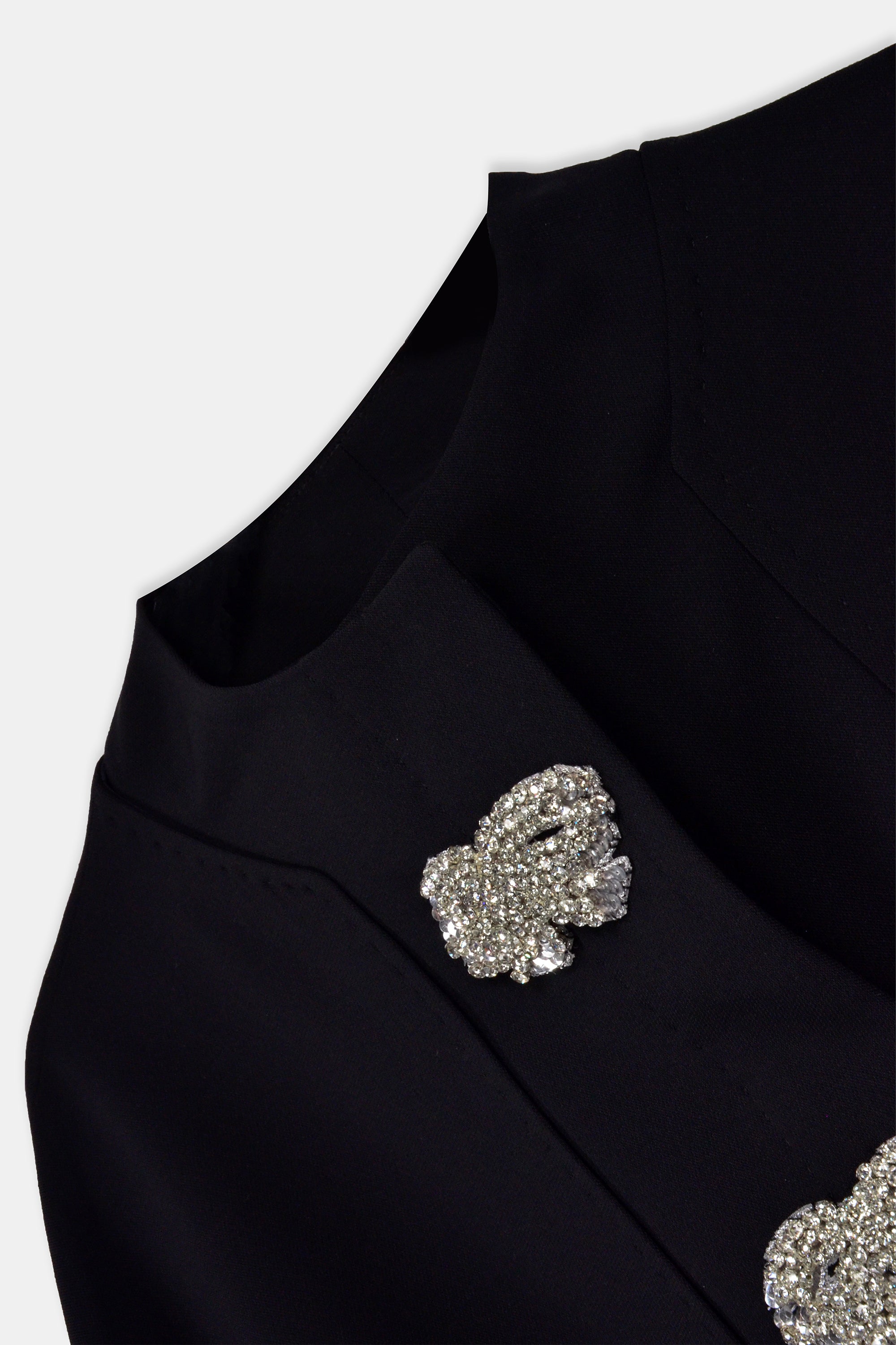 This Statement Jacket Elevates A Classic Silhouette With Sparkling Crystal Bow Appliqués Along The Front Closure. The Collarless Neckline And Clean Tailoring Provide A Modern Edge, While The Embellished Detail Adds A Glamorous Touch. Perfect To Layer Over Evening Dresses Or Tailored Separates For A Refined, Polished Look.