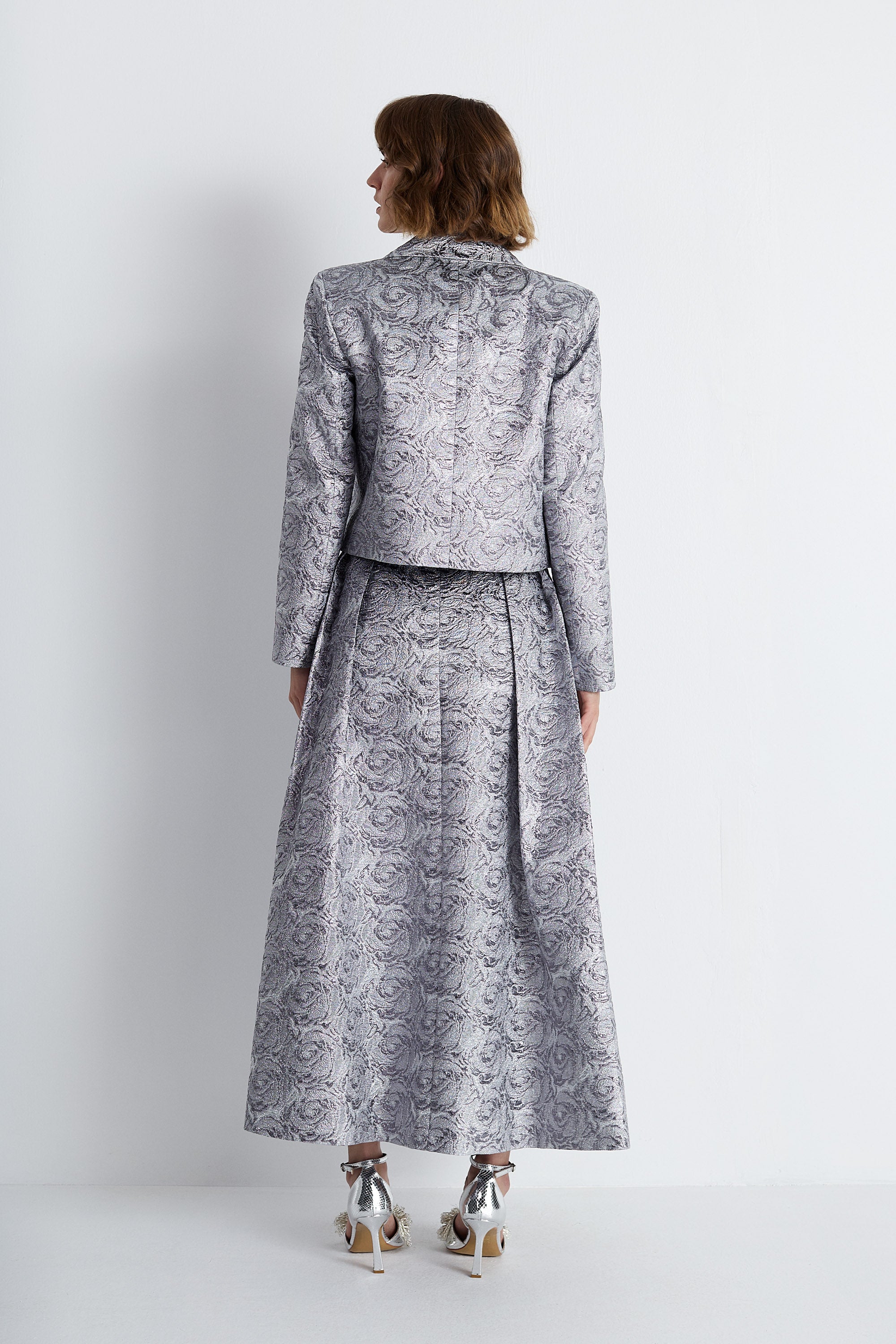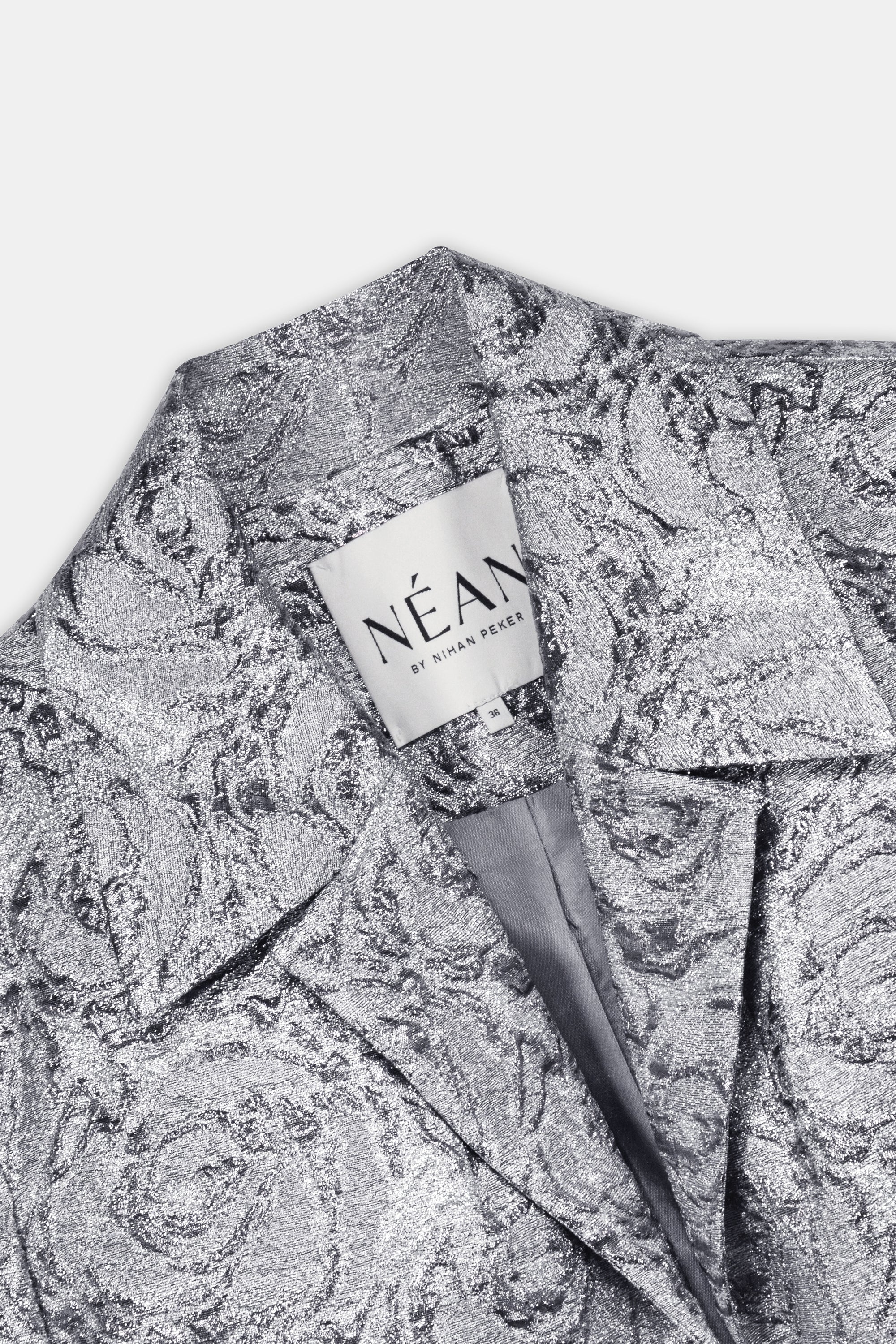 Nean Silver Brocade Cropped Tailored Jacket Dark Silver