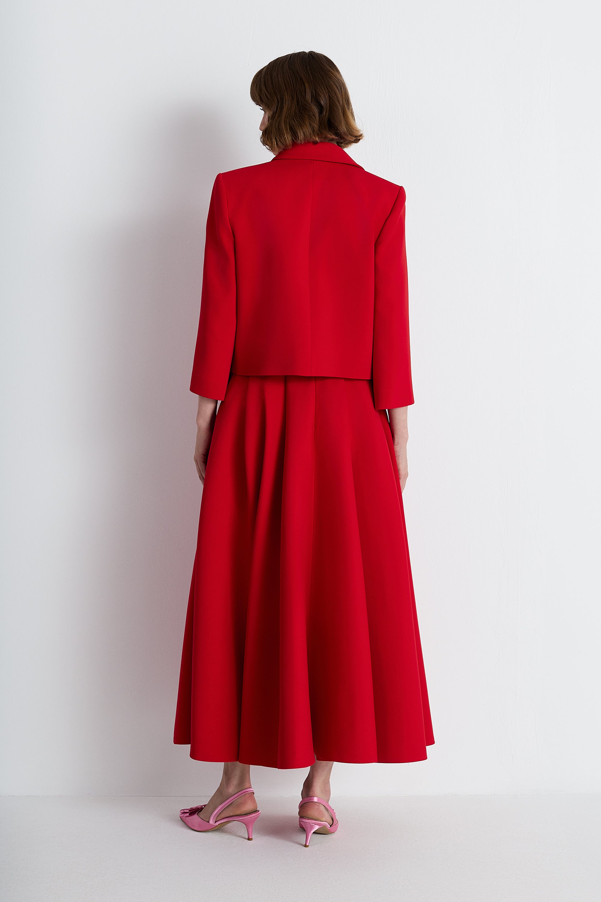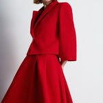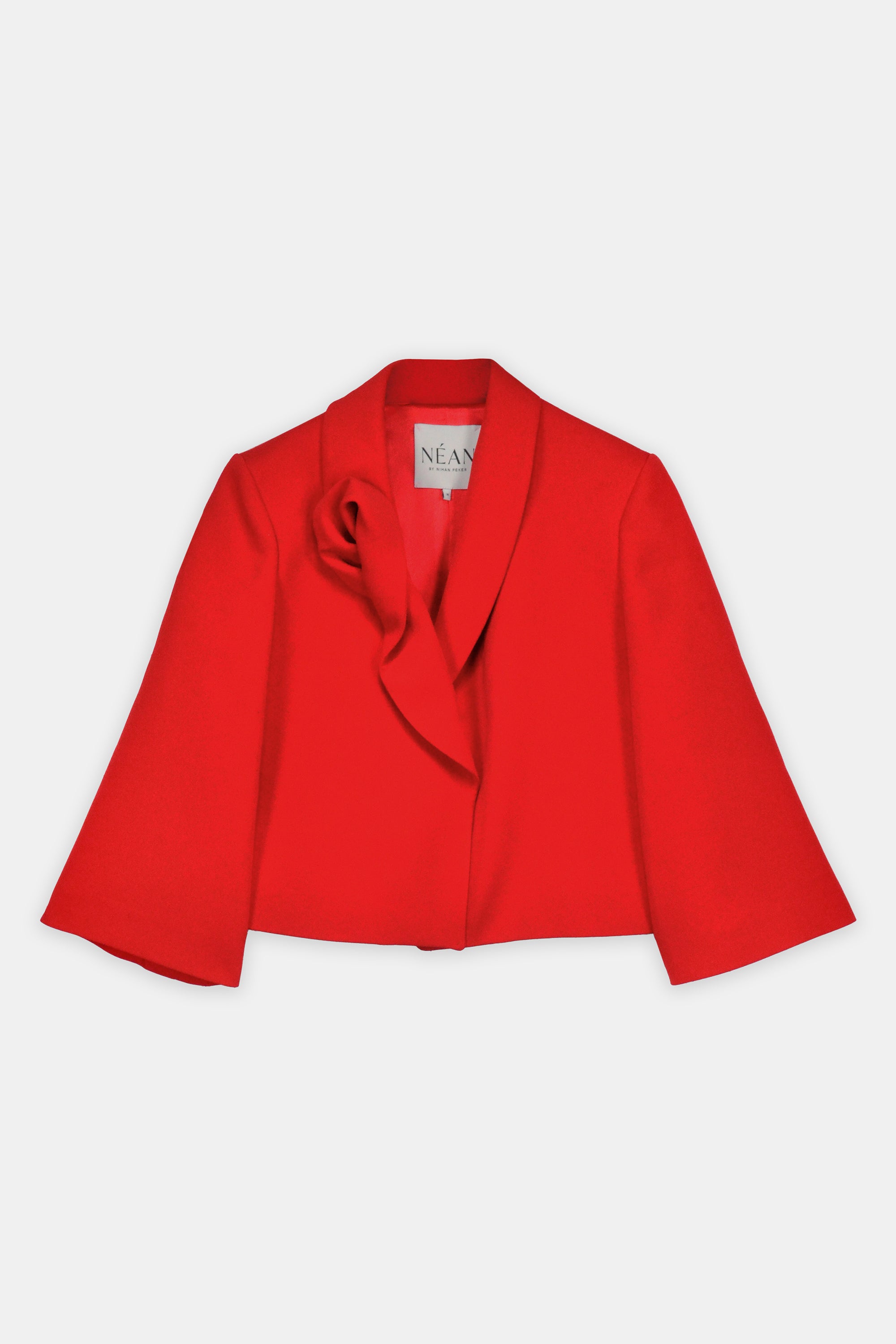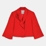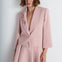 Modern Tailored Jacket In Soft Pink Featuring An Artistic Draped Lapel That Adds A Sculptural Touch. Perfect For Pairing With Matching Trousers Or Skirts For An Elevated Evening Look.